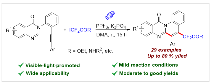 # 120 Photo-triggered tandem cyclization of arylethynyl quinazolin-4(3H)-one for difluoroalkylated quinolino[2,1-b]quina