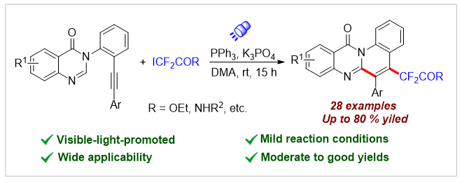 Abstract: A photoinduced cascade difluoroalkylation/cyclization reaction of unactivated arylethynyl quinazolin-4(3